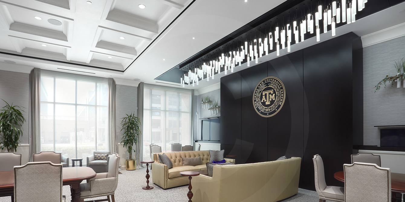 Pour ce projet de centre commémoratif étudiant, le lustre sur mesure Cassandra brille comme un bijou, emplissant la salle de son éclat. Sa lumière est plus qu’un éclairage : c’est un signe de distinction, un ornement qui élève l’espace et reflète l’esprit de l’université avec une sophistication intemporelle.